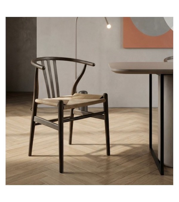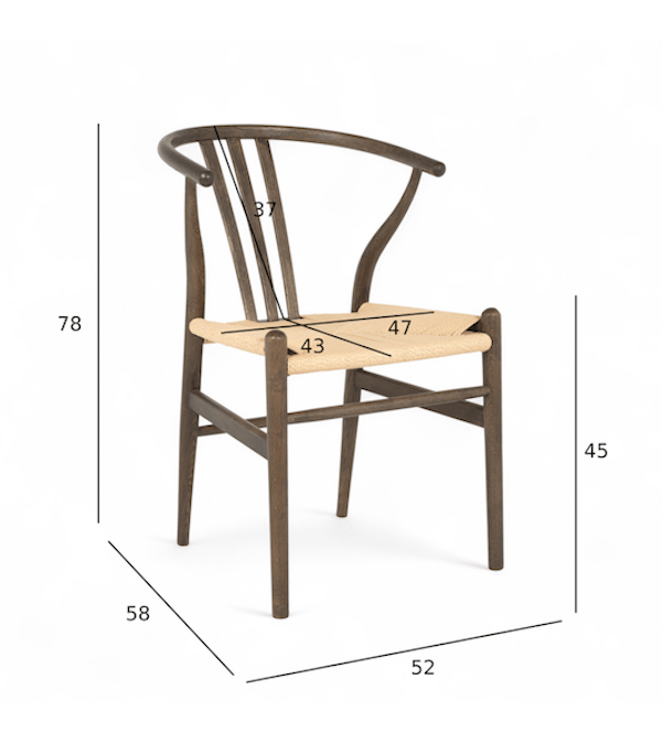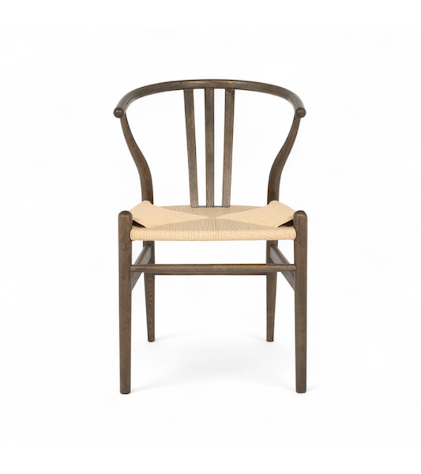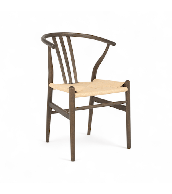 Nikoline spisestuestolen i røget eg bringer et strejf af raffineret elegance til spisestuen med et naturligt håndvævet sæde af papirreb kombineret med en rig, mørktonet ramme.