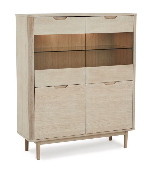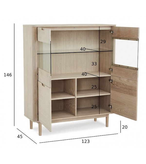 Highboard i egetræsfiner, MDF og massivt træ med hvidpigmenteret olie