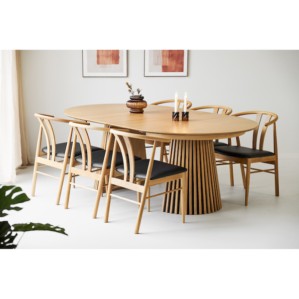 Osaka spisebord i egefiner inkl to tillægsplader.