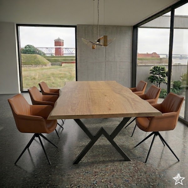 W-designet er ikke blot en visuel detalje, der skiller sig ud fra mængden, men sikrer også en uovertruffen stabilitet og god benplads til alle omkring bordet.