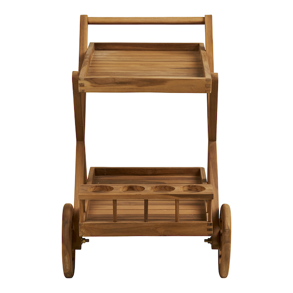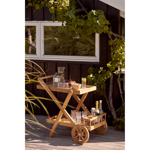 Denne serveringsvogn i teak med naturlig finish måler 86x50x81 cm.