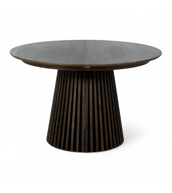 Dette smarte bord starter som et stilfuldt rundt bord på 120 cm, men giver dig fleksibiliteten til at tilpasse størrelsen efter behov.
