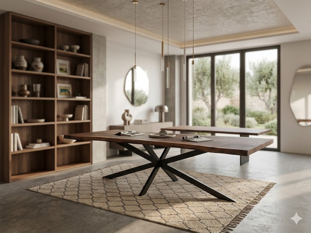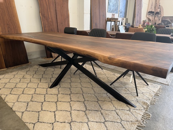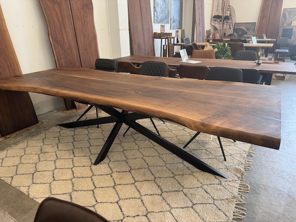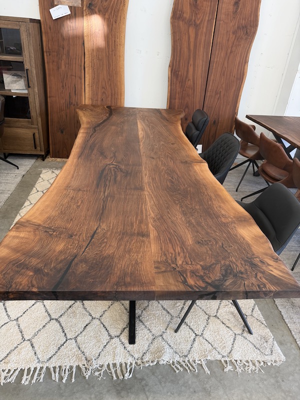 Hvert bord er håndlavet af det fineste valnødtræ, hvilket giver en unik og varm glød, der inviterer til samvær og hygge.